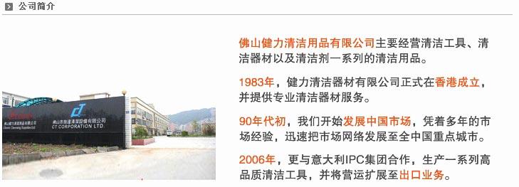 佛山健力清潔用品有限公司公司于1983在香港成立,初時主要業(yè)務是提供清潔機械之維修保養(yǎng)及清潔技術顧問,并兼營機械銷售,后憑著多年累積之市場及維修保養(yǎng)經(jīng)驗,直接引進歐美各地之專業(yè)產(chǎn)品及技術,而配套成為深受用戶們信賴之健力清潔用品系列。 健力用品供應有限公司于1991年展開在中國國內之業(yè)務,總部設于廣東佛山市,而分銷網(wǎng)絡已遍及各省主要城市。佛山總部除陳列室外,并設有倉庫及維修中心,以支持各地分銷業(yè)務需要,務求能提供高質之服務予使用客戶。